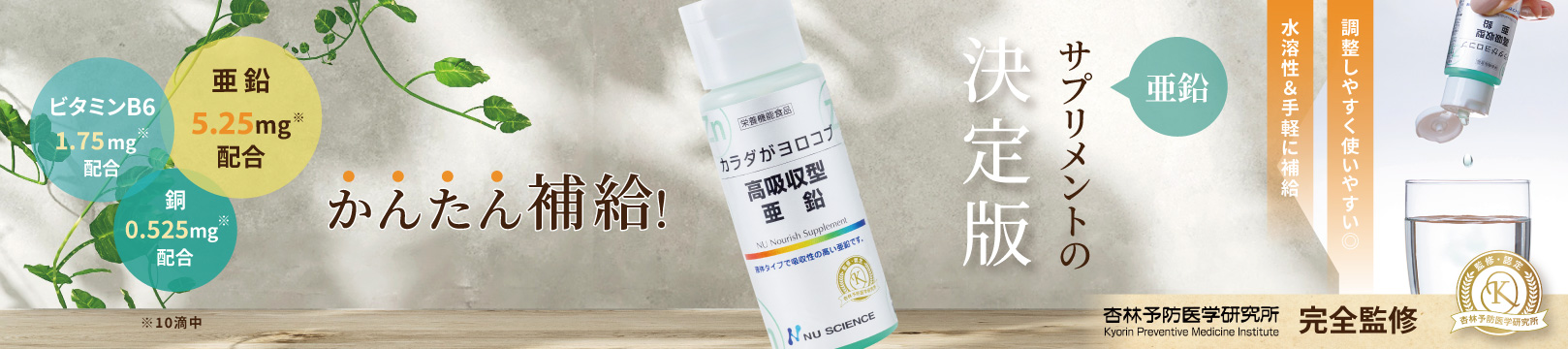“吸収“と”使いやすさ”を考慮した≪ 亜鉛 ≫の液体タイプが待望の仲間入り!!