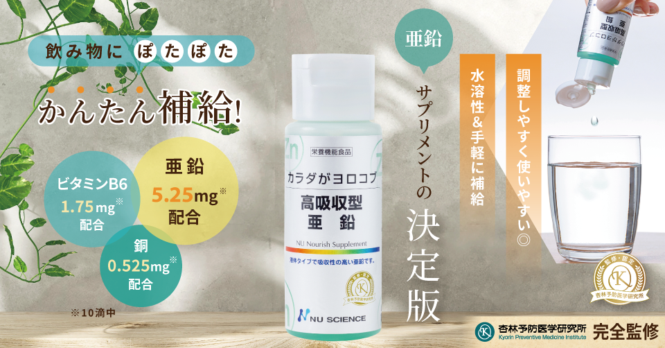 マグネシウムと同様に必須ミネラルであるにも関わらず、不足による健康への影響が懸念されている「亜鉛」 “吸収“と”使いやすさ”を考慮した液体タイプがついに誕生!