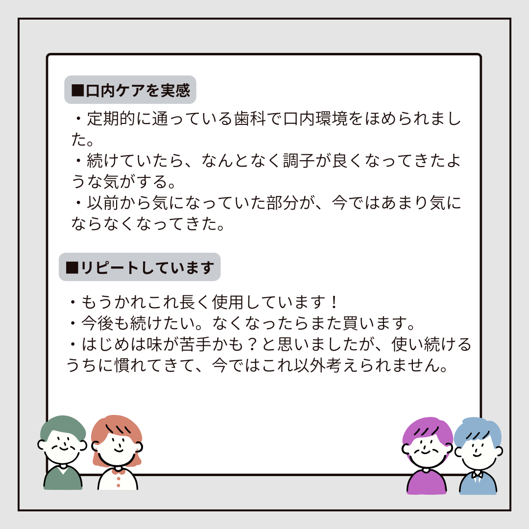 口臭を防ぐ。歯垢を除去する。歯のやにを取る。歯石の沈着を防ぐ。口中を浄化する。ムシ歯を防ぐ。歯を白くする。