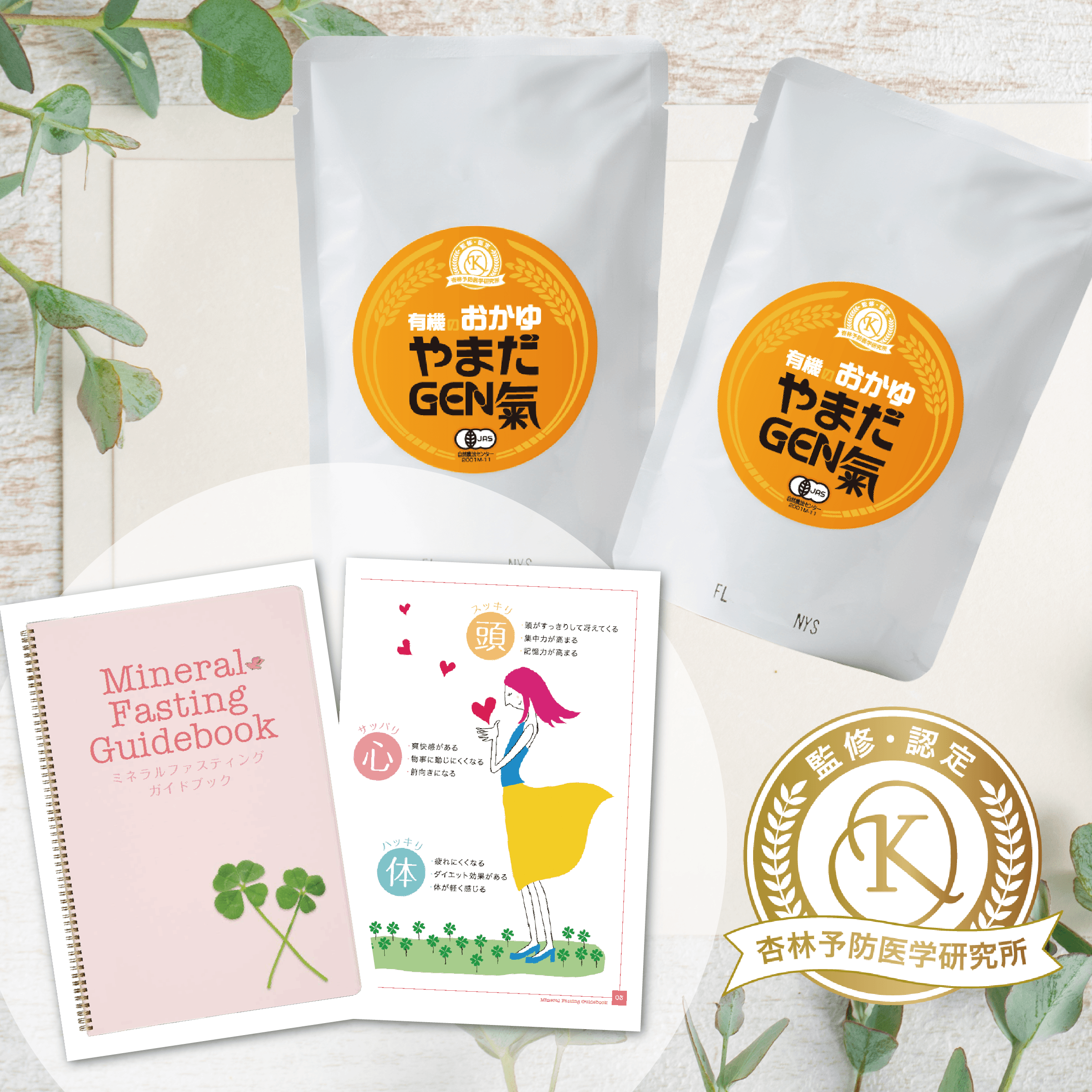 ファスティング・ヴィンテージプラス3本に、初めての方専用!準備期と復食期の1食目をサポートする、やまだGEN氣 有機粥【2袋】のセットメニュー!
